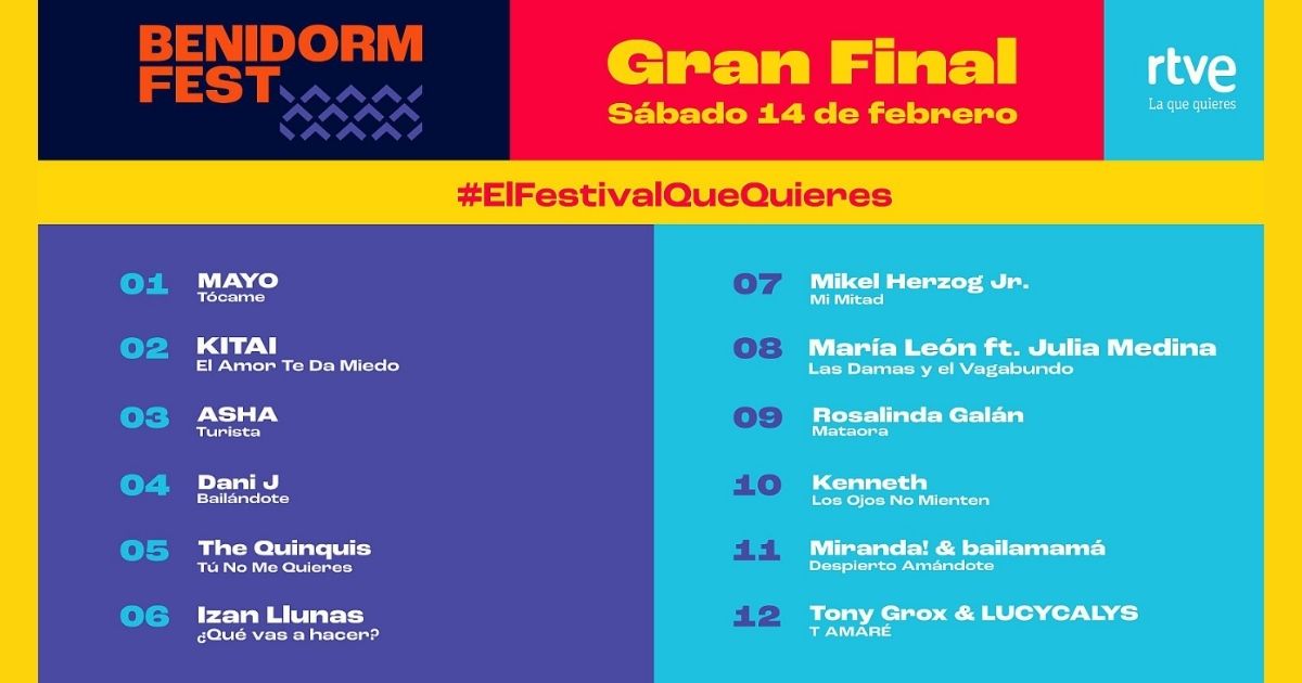 RTVE has published the performance order for the 12 finalists. It’s a classic Benidorm set-up: pop first, variety through the middle, and a final stretch designed to leave viewers debating favourites.
