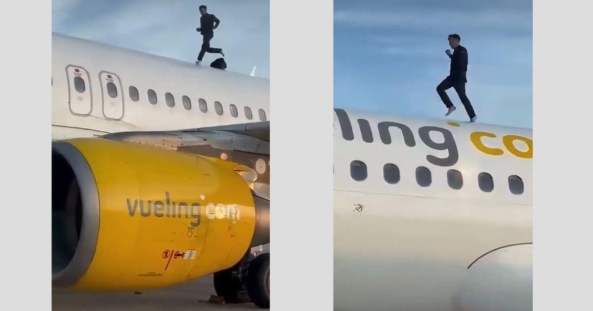 Footage shared online showed the man moving across the top of the fuselage while staff on the ground attempted to contain the situation. La Vanguardia